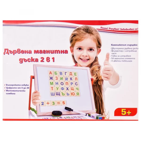Дървена магнитна дъска с българската азбука 2в1 - Код W3003