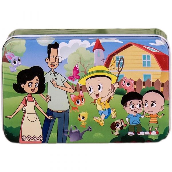 Комплектът съдържа дървени цветни елементи, на които от едната страна има картинка с любими герои, а от другата страна числата от 1 до 54, математически знаци и символи.