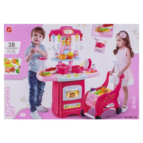 Комплектът съдържа текстилни престилка, шапка, ръкавичка и ръкохватка, дървени точилка и лъжица, метална бъркалка и 4 метални формички за сладки или соленки.