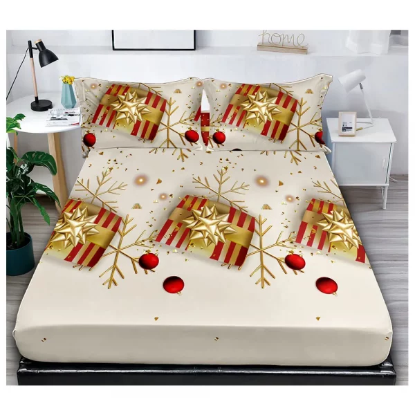 Коледен долен чаршаф с ластик и две калъфки, 3 части - Модел S14856
