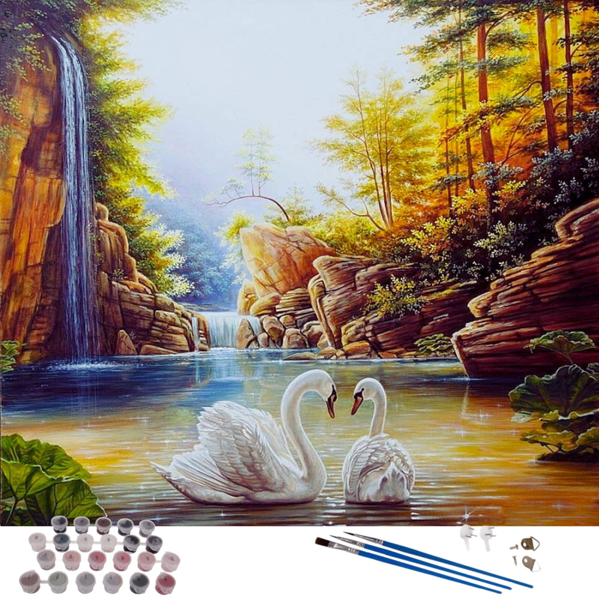 Картина за рисуване по номера „Лебеди“ 40х50см с подрамка – Код B0028