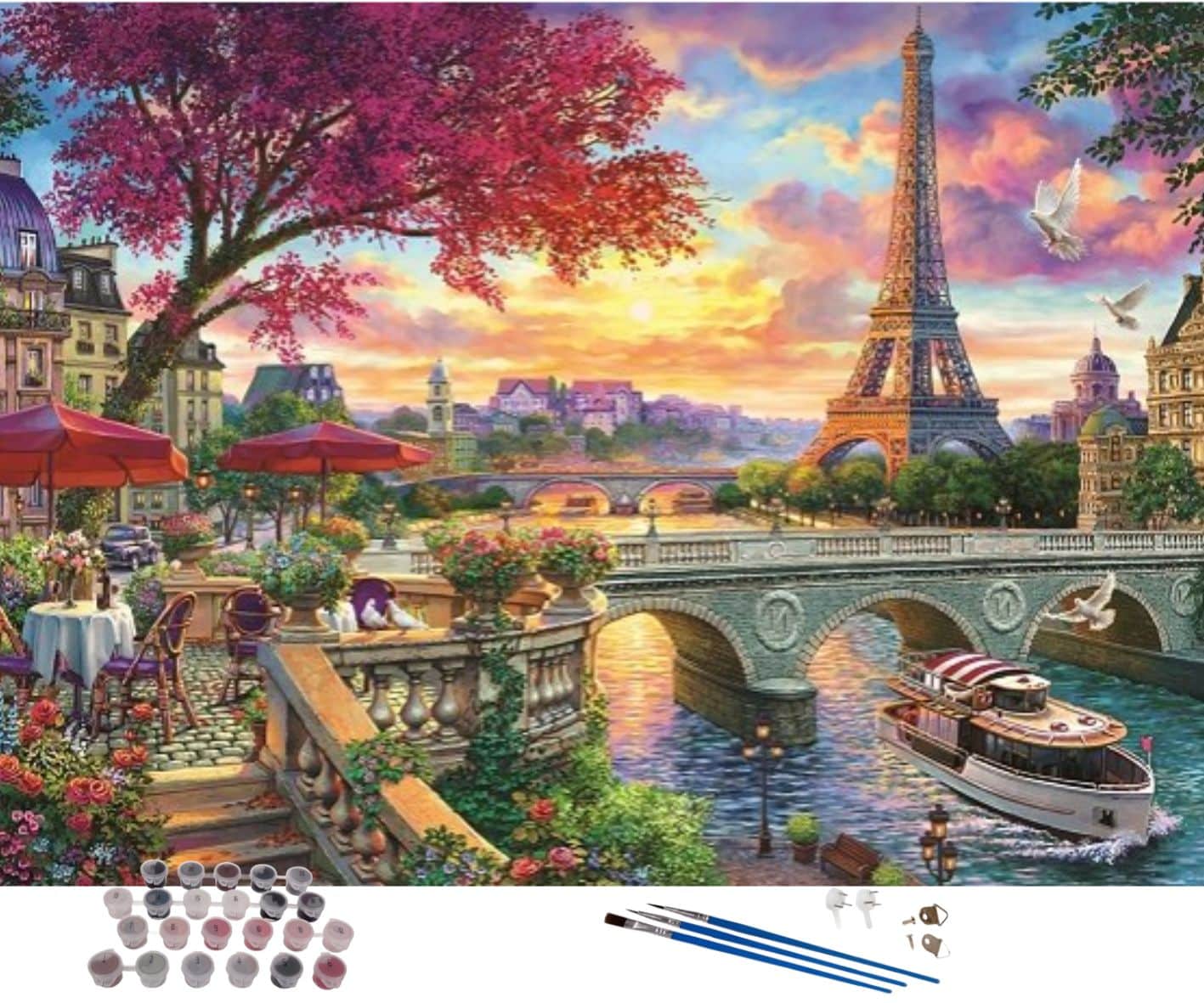 Картина за рисуване по номера „Залез над Париж“ 30х40см с подрамка – Код D20231