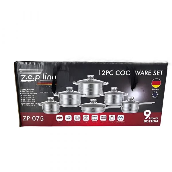 Комплект съдове Zepline ZP-075, Неръждаема стомана, 12 части, Инокс - Код G8958