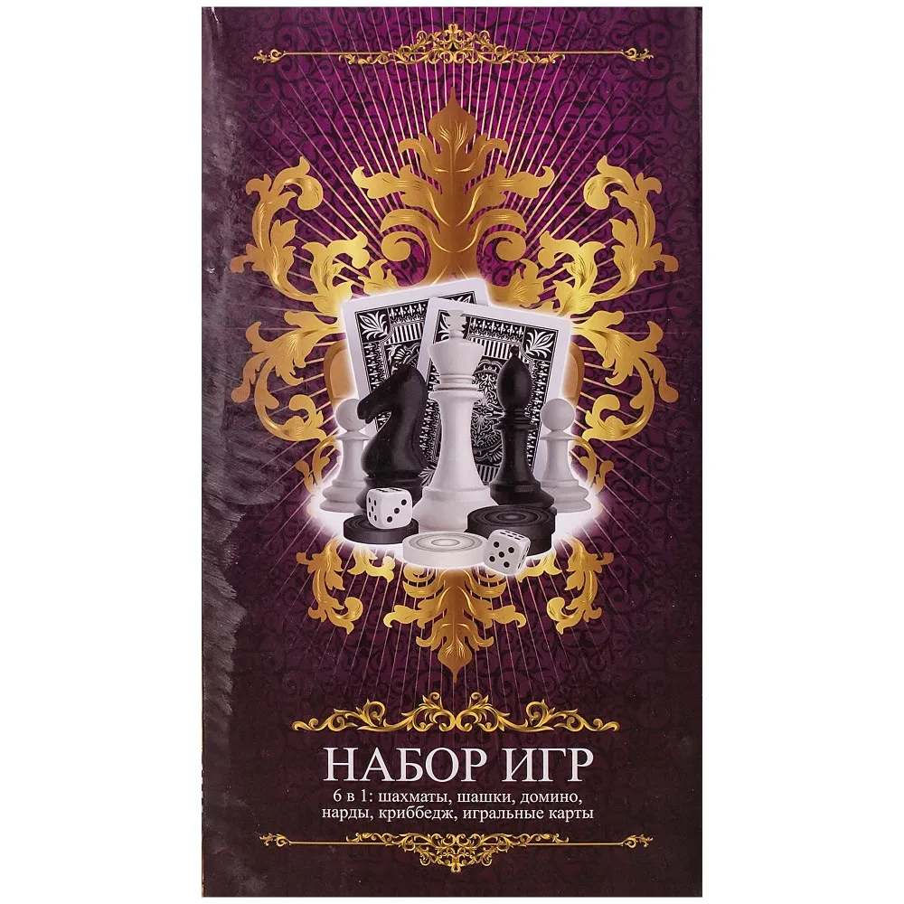Комплектът съдържа куфарче от изкуствена кожа с магнитно поле и пластмасови магнитни фигурки и пулове за игра на „Шах“, „Шашки“, „Табла“, пластмасови плочки за играта „Домино“, класически карти за игра, кутийка с отвори и клечки за играта „Крибидж“, пластмасови зарчета.