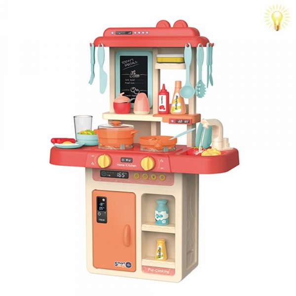 Функции: светещи котлони, реалистични звуци на приготвяне на храна, течаща вода от крана на мивката, отваряема врата на фурната.