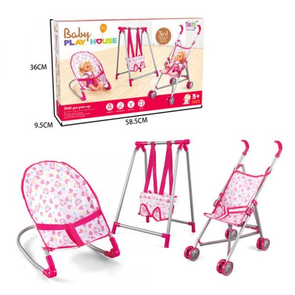 Детски комплект количка, шезлонг и люлка за кукла 3в1 - Код W3578