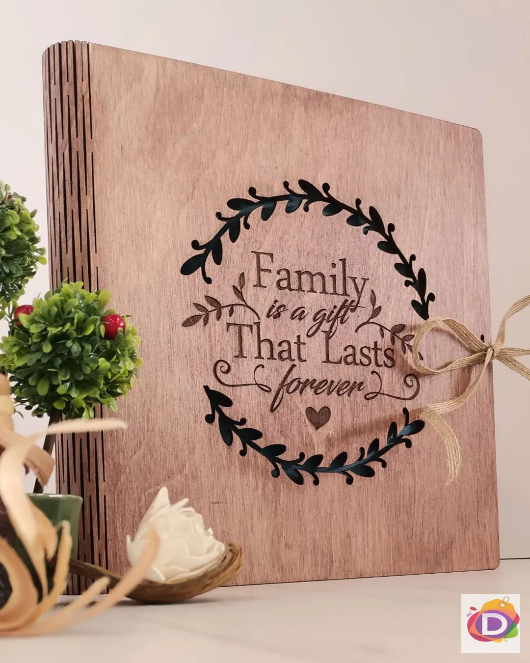 Ръчно изработен луксозен фотоалбум с лазерно гравирана корица. Уникален подарък, с който да запазите и съхраните вашите ценни моменти и скъпи спомени. Албумът съдържа 80 стр.(40 листа), разпечатани на дизайнерска хартия, в размер – 210/220 мм.Всяка страница може да съдържа две или повече снимки с различни размери.Изненадайте вашите любими хора,като съхраните най-милите и ценни спомени заедно!