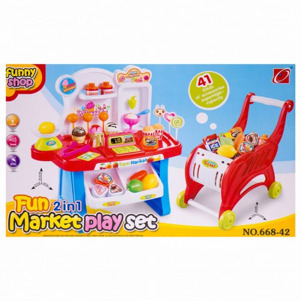Детски комплект супермаркет и количка за пазаруване - Код W2740