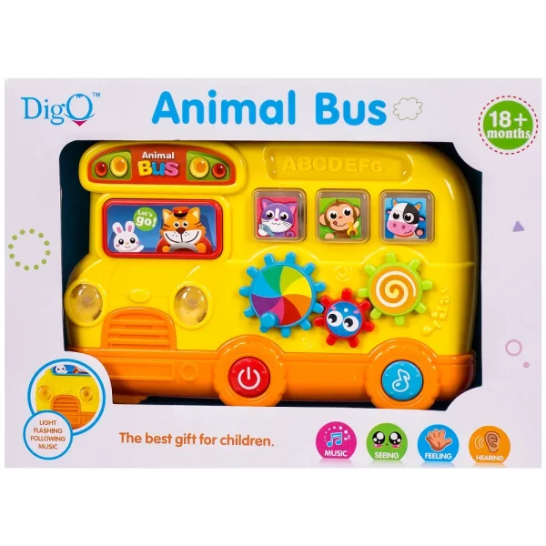 Функции на дрънкалката: светещ елемент, забавни звуци и мелодийки, меки части за гризкане и масаж на венците на детето, подвижно хоботче със забавен звук.