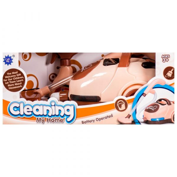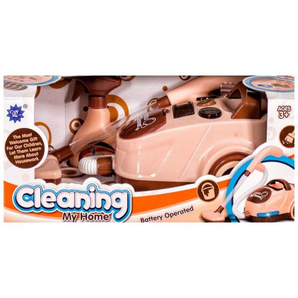 Пластмасова играчка прахосмукачка с реална функция засмукване, светещи елементи и реалистичен звук.