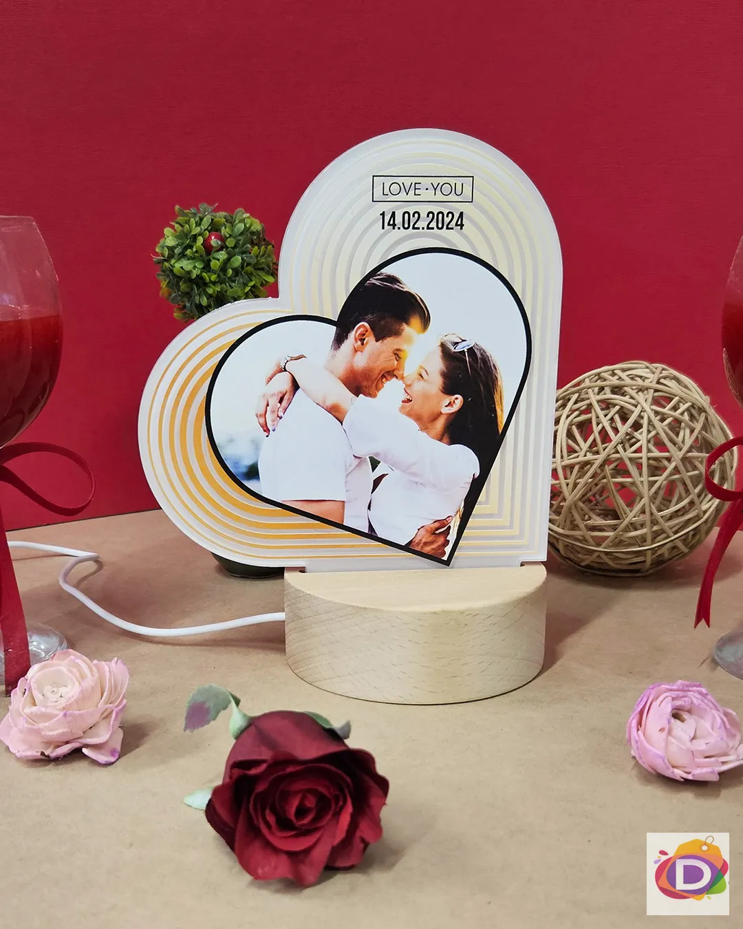 Акрилна рамка със светеща поставка във формата на сърце е прекрасен персонализиран подарък,