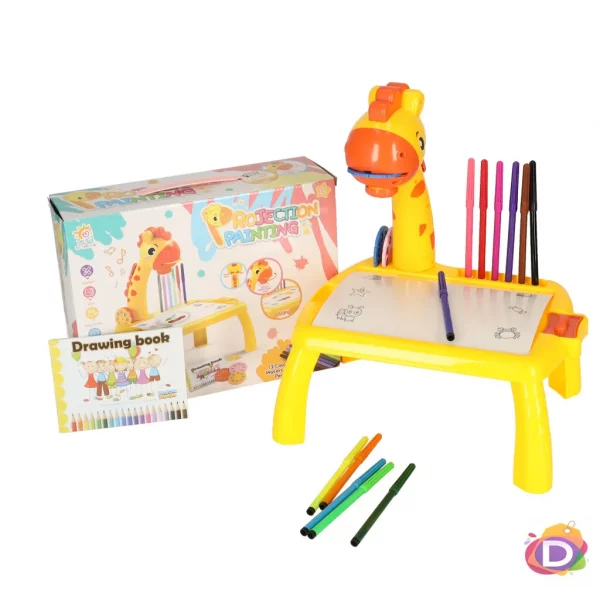 Детска масичка за рисуване с проектор, музикална Жираф, жълта - Код D2495
