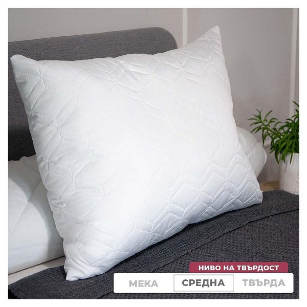 Мемори Фикс в възглавница, изработена с калъф от висококачествен капитониран микрофибър и пълнеж от мемори пух.